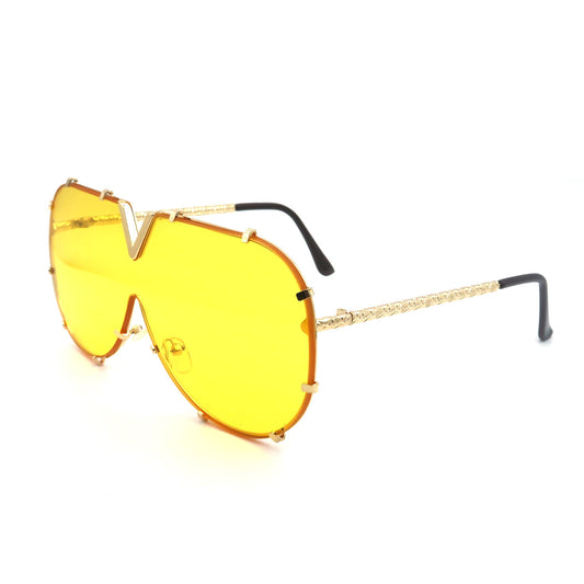 #81058 Fashion Luxury V-shaped Oversized Metal Frames Women's Sunglasses